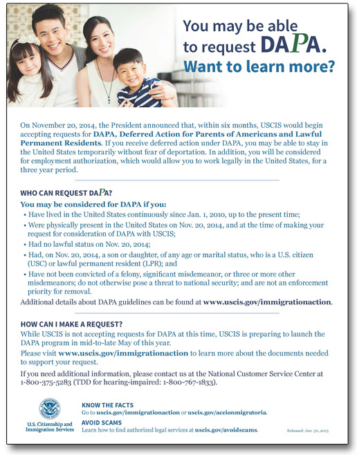Additional details about DAPA guidelines can be found at www.uscis.gov/immigrationaction